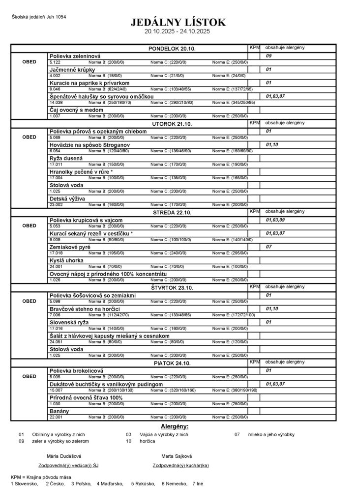 Jedálny lístok