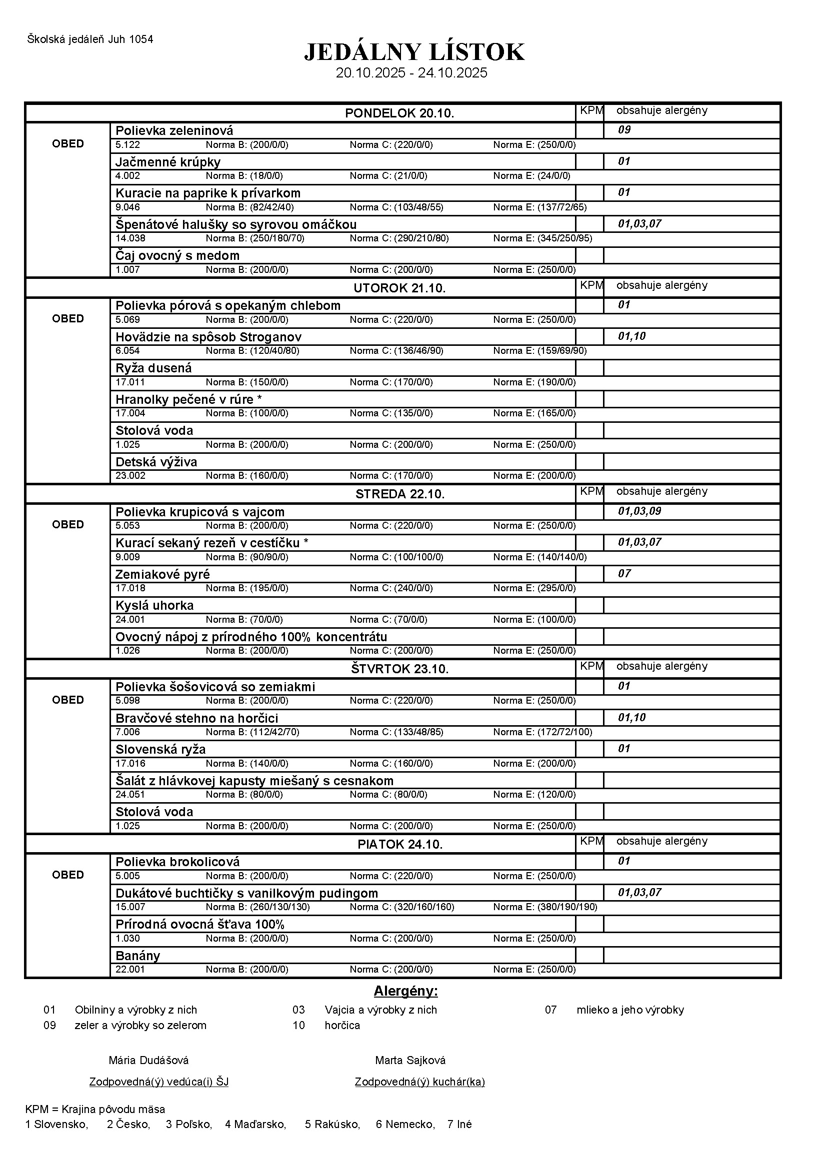 Ceny obedov